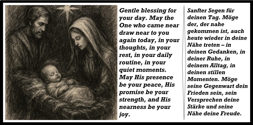 Gentle blessing for your day. May the One who came near draw near to you again today, in your thoughts, in your rest, in your daily routine, in your quiet moments. May His presence be your peace, His promise be your strength, and His nearness be your joy.