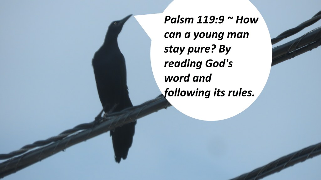 It reads in Palsm 119:9 ~ How can a young man stay pure? By reading God’s word and following its rules.