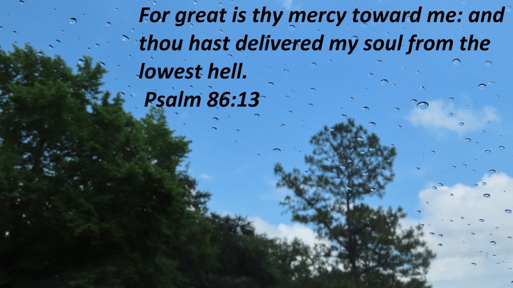 For great is thy mercy toward me: and thou hast delivered my soul from the lowest hell. Psalm 86:13