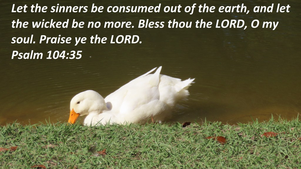Let the sinners be consumed out of the earth, and let the wicked be no more. Bless thou the LORD, O my soul. Praise ye the LORD.