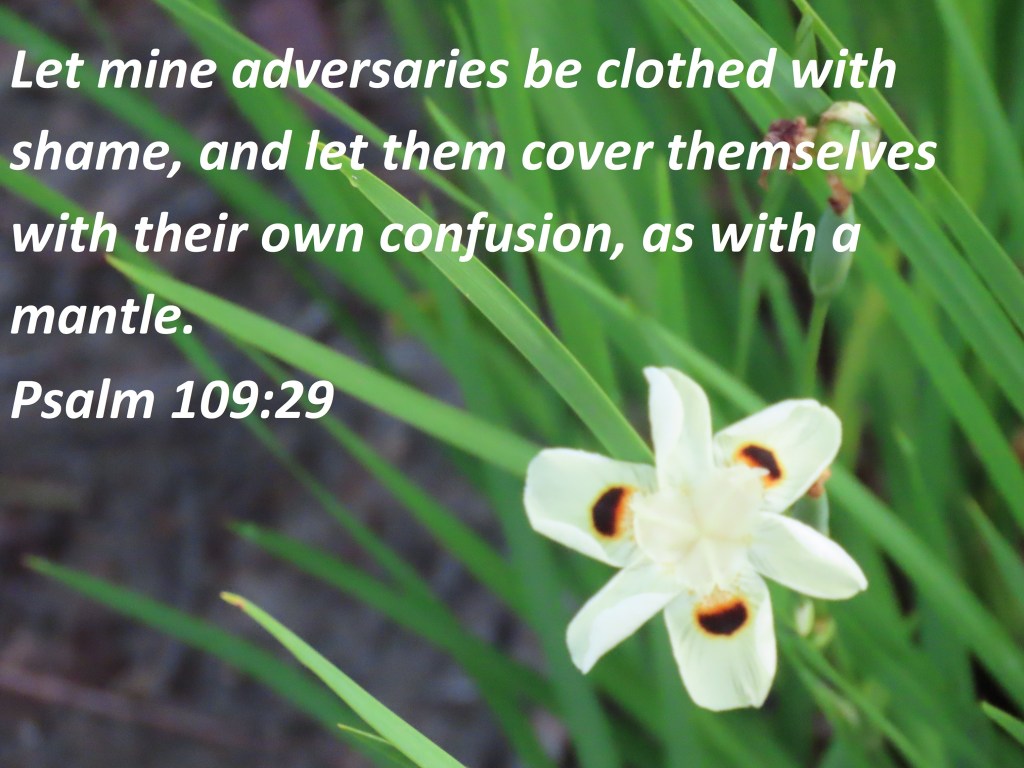 Let mine adversaries be clothed with shame, and let them cover themselves with their own confusion, as with a mantle. Psalm 109:29