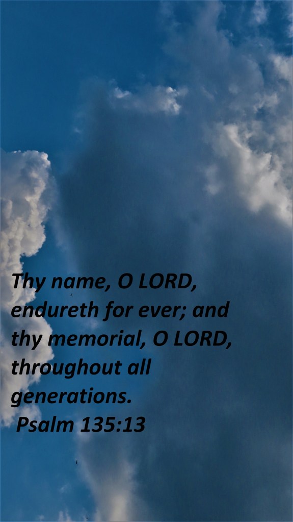 Thy name, O LORD, endures for ever; and thy memorial, O LORD, throughout all generations. Psalm 135:13