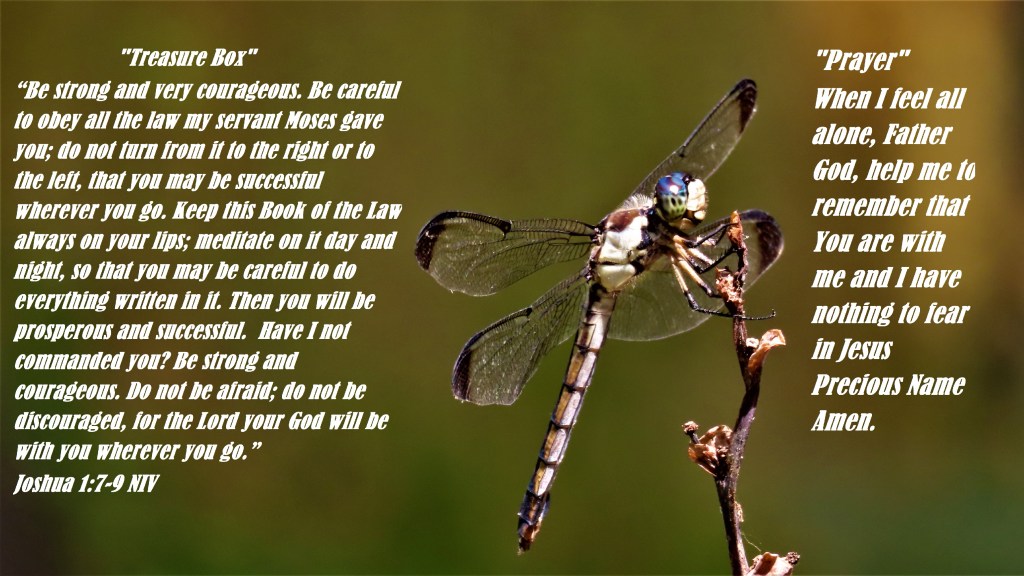 “Be strong and very courageous. Be careful to obey all the law my servant Moses gave you; do not turn from it to the right or to the left, that you may be successful wherever you go. Keep this Book of the Law always on your lips; meditate on it day and night, so that you may be careful to do everything written in it. Then you will be prosperous and successful. Have I not commanded you? Be strong and courageous. Do not be afraid; do not be discouraged, for the Lord your God will be with you wherever you go.”