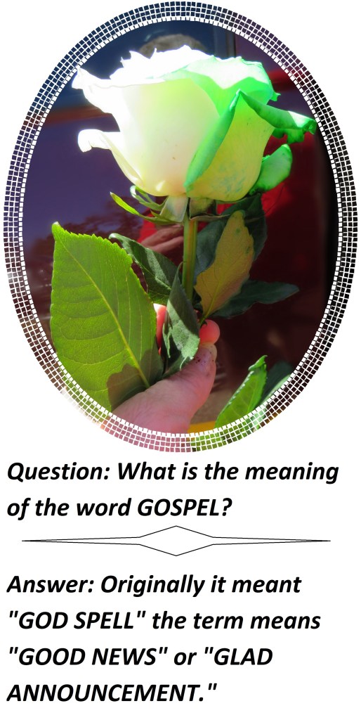 Originally it meant “GOD SPELL” the term means “GOOD NEWS” or “GLAD ANNOUNCEMENT.”