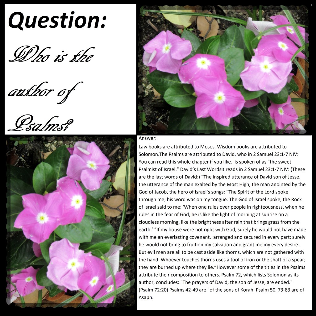 The Psalms are attributed to David, who in 2 Samuel 23:1-7 NIV: You can read this whole chapter if you like. is spoken of as “the sweet Psalmist of Israel.” David’s Last Words