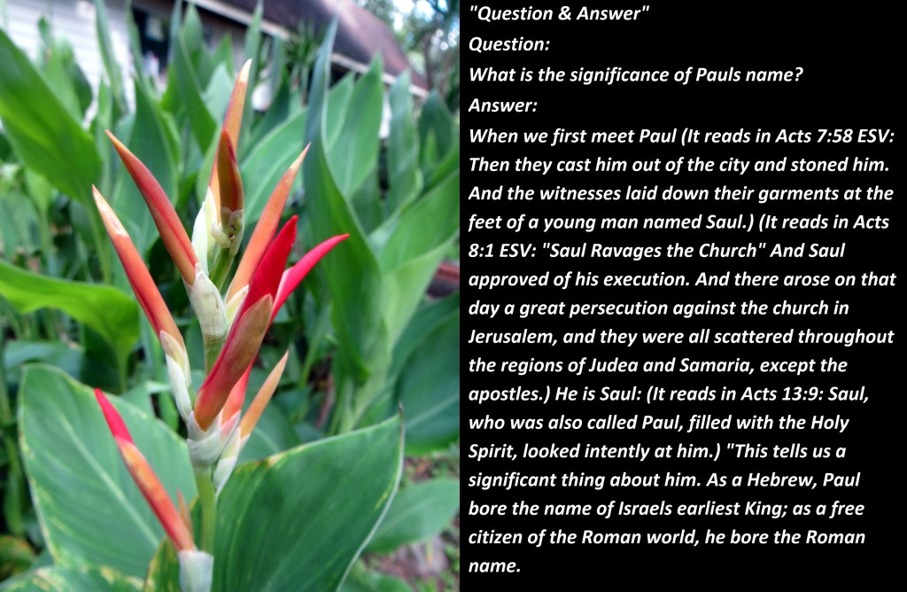 When we first meet Paul (It reads in Acts 7:58 ESV: Then they cast him out of the city and stoned him. And the witnesses laid down their garments at the feet of a young man named Saul.) (It reads in Acts 8:1 ESV: “Saul Ravages the Church” And Saul approved of his execution. And there arose on that day a great persecution against the church in Jerusalem, and they were all scattered throughout the regions of Judea and Samaria, except the apostles.) He is Saul: (It reads in Acts 13:9: Saul, who was also called Paul, filled with the Holy Spirit, looked intently at him.) “This tells us a significant thing about him. As a Hebrew, Paul bore the name of Israels earliest King; as a free citizen of the Roman world, he bore the Roman name.