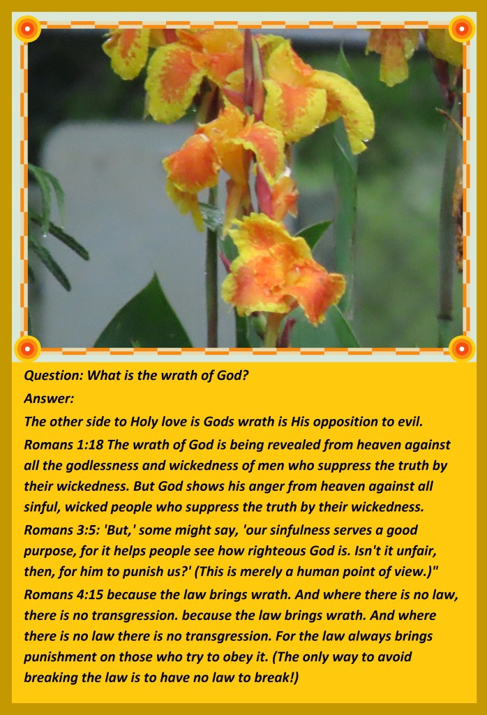 The other side to Holy love is Gods wrath is His opposition to evil.