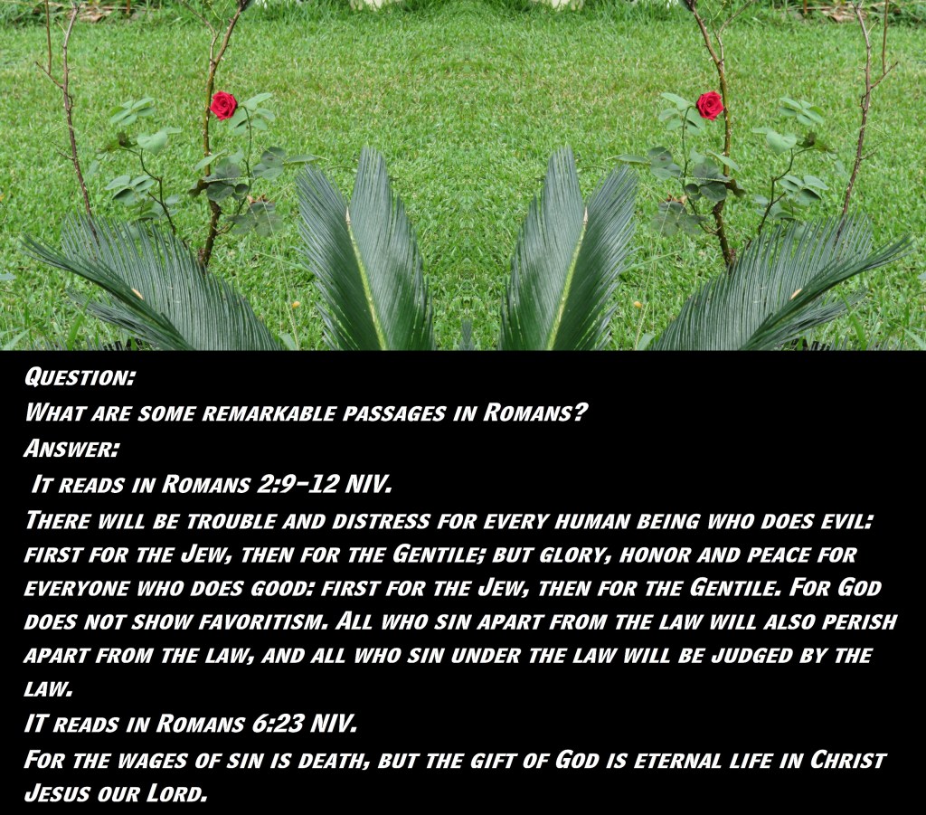 There will be trouble and distress for every human being who does evil: first for the Jew, then for the Gentile; but glory, honor and peace for everyone who does good: first for the Jew, then for the Gentile. For God does not show favoritism. All who sin apart from the law will also perish apart from the law, and all who sin under the law will be judged by the law.