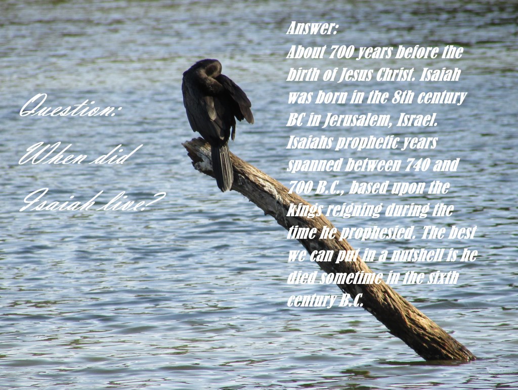 About 700 years before the birth of Jesus Christ. Isaiah was born in the 8th century BC in Jerusalem, Israel. Isaiahs prophetic years spanned between 740 and 700 B.C., based upon the kings reigning during the time he prophesied. The best we can put in a nutshell is he died sometime in the sixth century B.C.