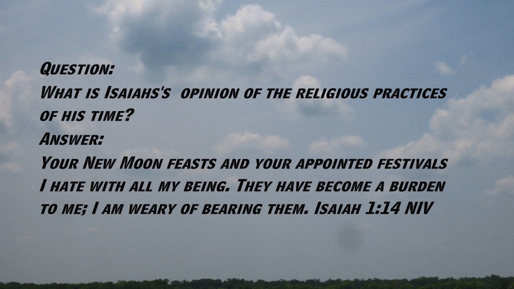 Your New Moon feasts and your appointed festivals I hate with all my being. They have become a burden to me; I am weary of bearing them.