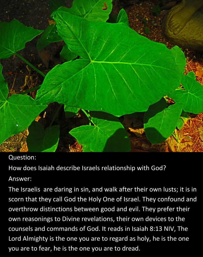 The Israelis are daring in sin and walk after their own lusts; it is in scorn that they call God the Holy One of Israel. They confound and overthrow distinctions between good and evil. They prefer their own reasonings to Divine revelations, their own devices to the counsels and commands of God. It reads in Isaiah 8:13 NIV, The Lord Almighty is the one you are to regard as holy, he is the one you are to fear, he is the one you are to dread.