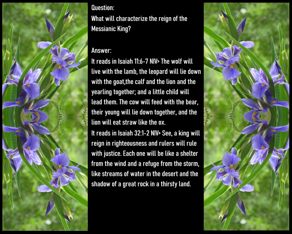 It reads in Isaiah 32:1-2 NIV> See, a king will reign in righteousness and rulers will rule with justice. Each one will be like a shelter from the wind and a refuge from the storm, like streams of water in the desert and the shadow of a great rock in a thirsty land.