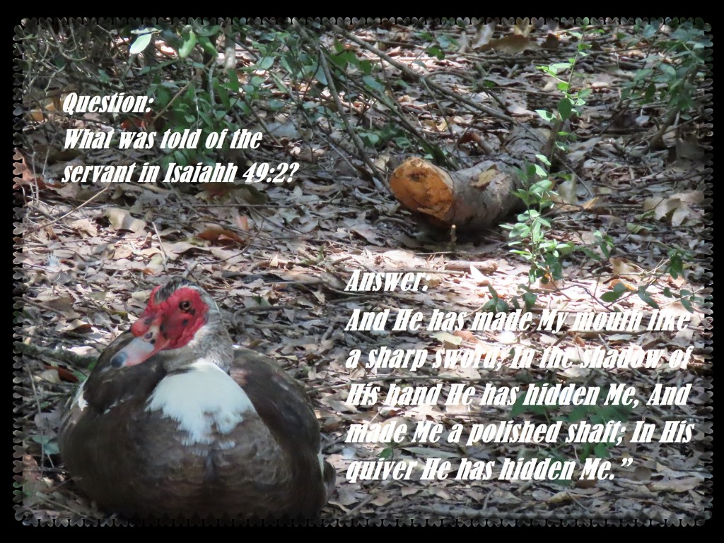And He has made My mouth like a sharp sword; In the shadow of His hand He has hidden Me, And made Me a polished shaft; In His quiver, He has hidden Me.”