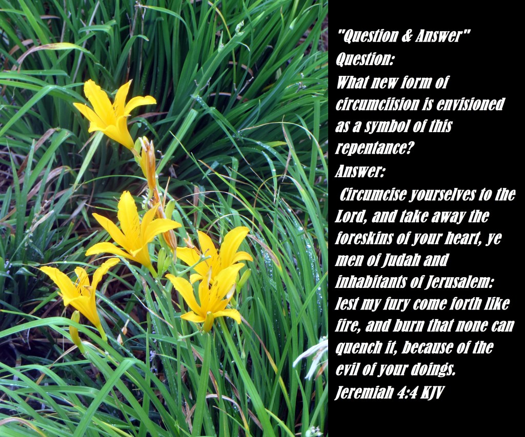 Circumcise yourselves to the Lord, and take away the foreskins of your heart, ye men of Judah and inhabitants of Jerusalem: lest my fury come forth like fire, and burn that none can quench it, because of the evil of your doings.