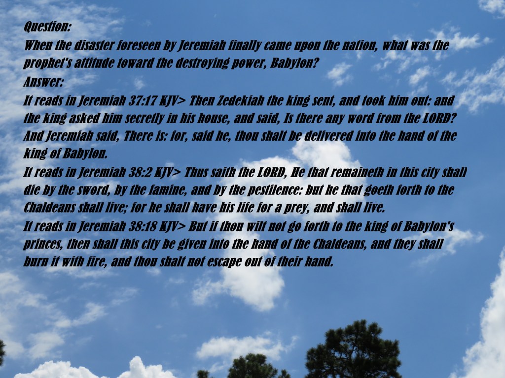 When the disaster foreseen by Jeremiah finally came upon the nation, what was the prophet’s attitude toward the destroying power, Babylon?