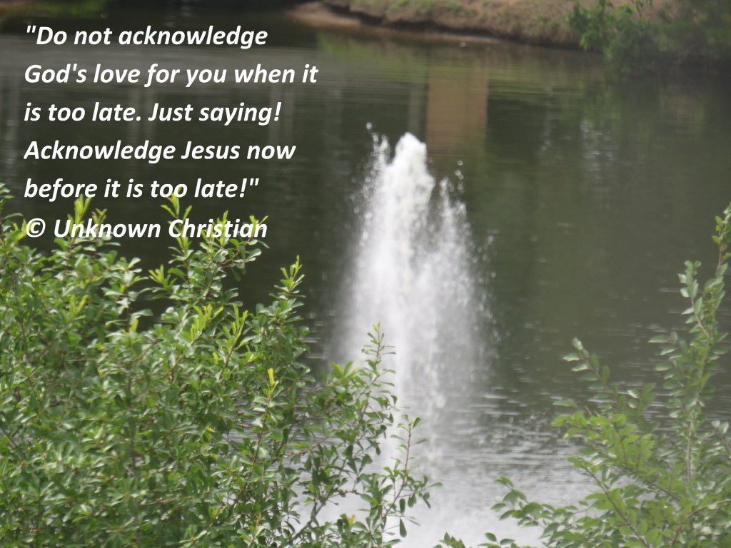 “Do not acknowledge God’s love for you when it is too late. Just saying! Acknowledge Jesus now before it is too late!”