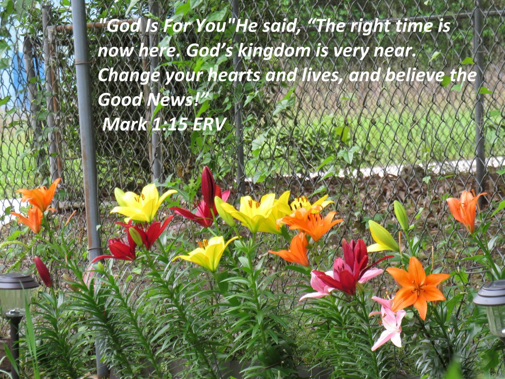 He said, “The right time is now here. God’s kingdom is very near. Change your hearts and lives and believe the Good News!”