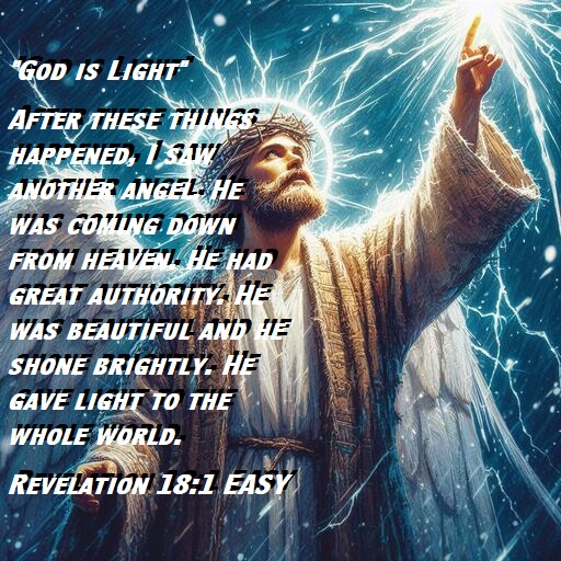 After these things happened, I saw another angel. He was coming down from heaven. He had great authority. He was beautiful and he shone brightly. He gave light to the whole world.