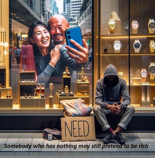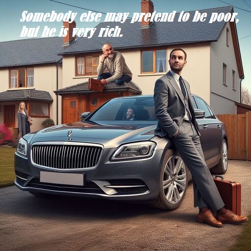 Somebody else may pretend to be poor, but he is very rich.}