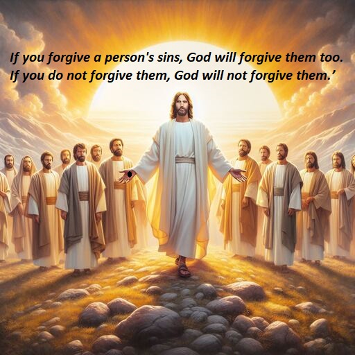 {Jesus appears to his disciples} On the evening of that same day, the first day of the week, the disciples were meeting together. They had locked the doors of the room because they were afraid of the Jewish leaders. Then Jesus came and he stood among them. He said to them, ‘Peace be with you.’ After he had said this, he showed them his hands and his side. The disciples were very, very happy when they saw the Lord. Jesus said again, ‘Peace be with you. As the Father has sent me, in the same way, I am now sending you.’ When he had said this, he breathed on them. He said, ‘Receive God’s Holy Spirit. If you forgive a person’s sins, God will forgive them too. If you do not forgive them, God will not forgive them.’