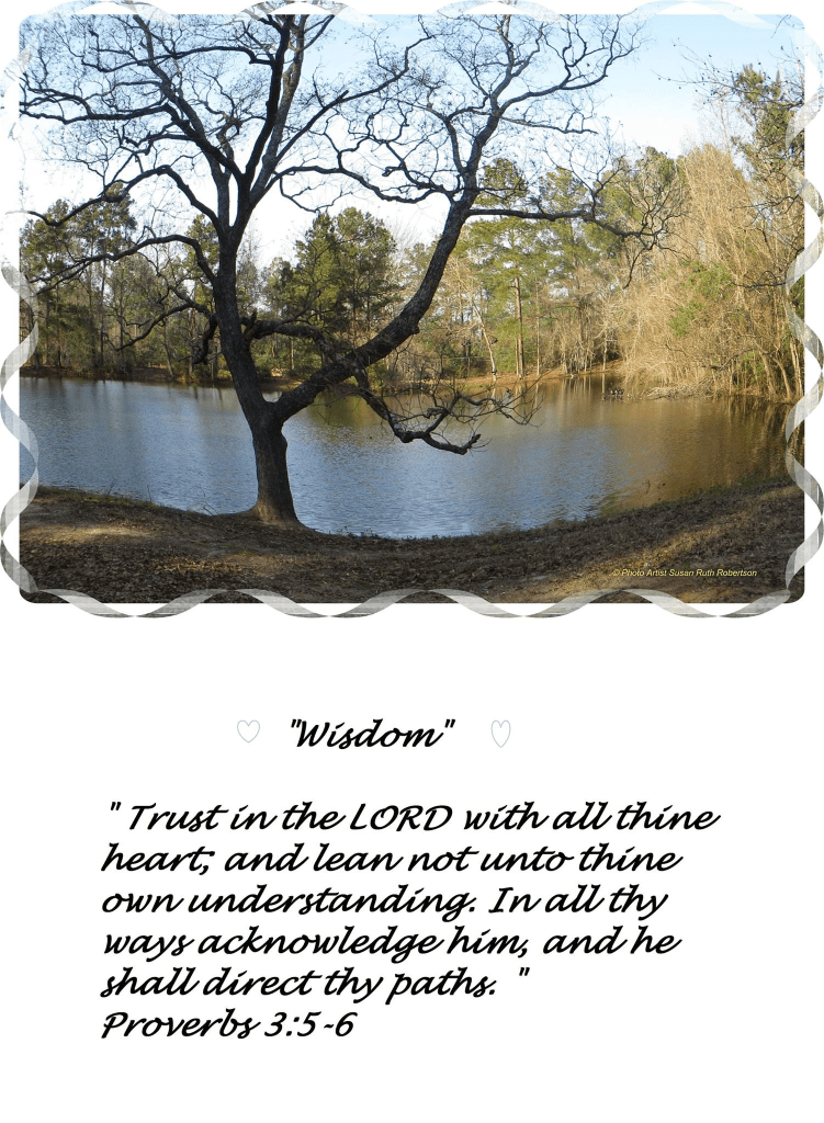 ” Trust in the LORD with all thine heart; and lean not unto thine own understanding. In all thy ways acknowledge him, and he shall direct thy paths. “