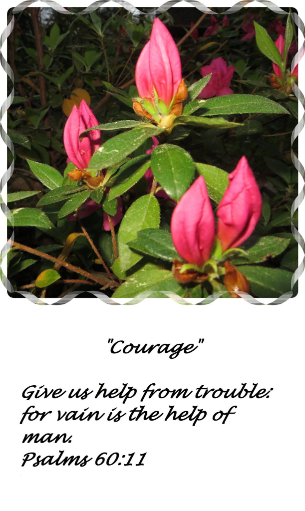 Posted on March 16, 2024March 13, 2024 by © Christian National Church of Christ“Courage” Give us help from trouble: for vain is the help of man.Psalms 60:11… Share this: Click to share on X (Opens in new window) X Click to share on Facebook (Opens in new window) Facebook Like Loading... Related