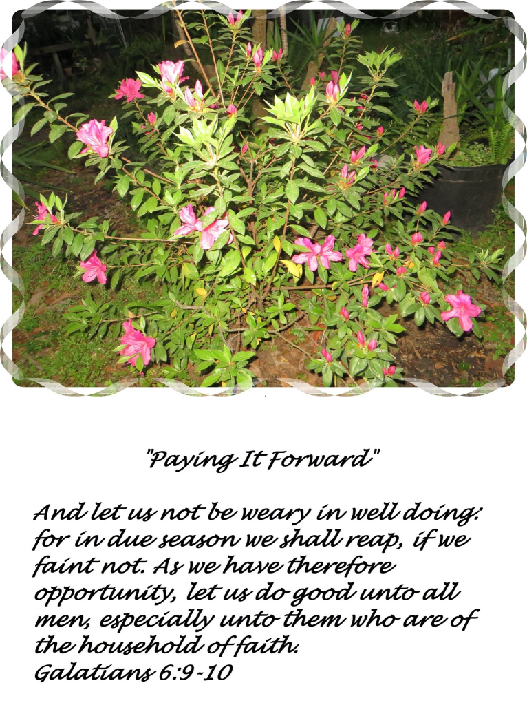 And let us not be weary in well doing for in due season, we shall reap, if we faint not. As we have therefore opportunity, let us do good unto all men, especially unto them who are of the household of faith.