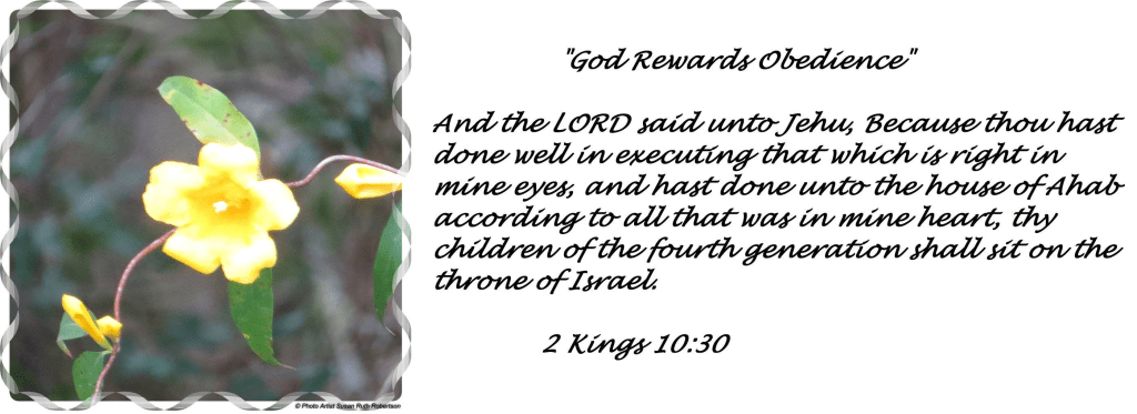 And the LORD said unto Jehu, Because thou hast done well in executing that which is right in mine eyes, and hast done unto the house of Ahab according to all that was in mine heart, thy children of the fourth generation shall sit on the throne of Israel.