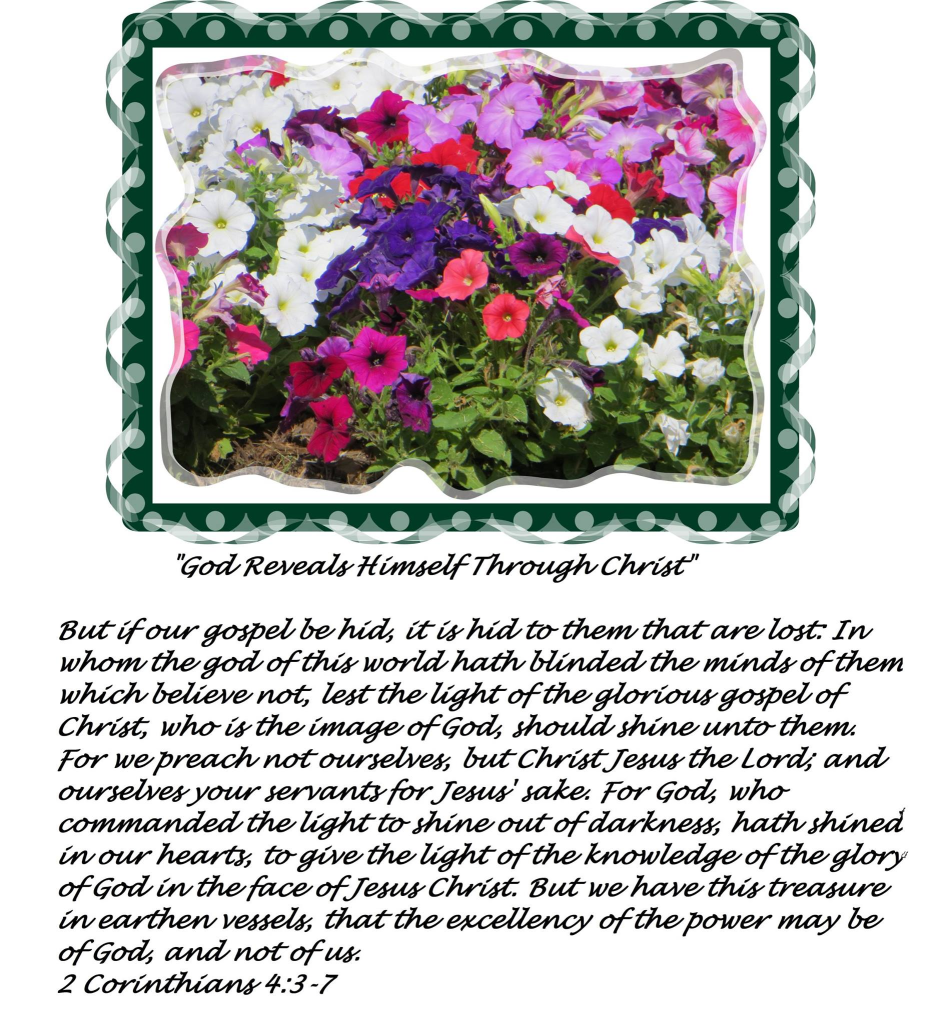 But if our gospel be hid, it is hidden to them that are lost: In whom the god of this world hath blinded the minds of them which believe not, lest the light of the glorious gospel of Christ, who is the image of God, should shine unto them. For we preach not ourselves, but Christ Jesus the Lord; and ourselves your servants for Jesus’ sake. For God, who commanded the light to shine out of darkness, hath shined in our hearts, to give the light of the knowledge of the glory of God in the face of Jesus Christ.