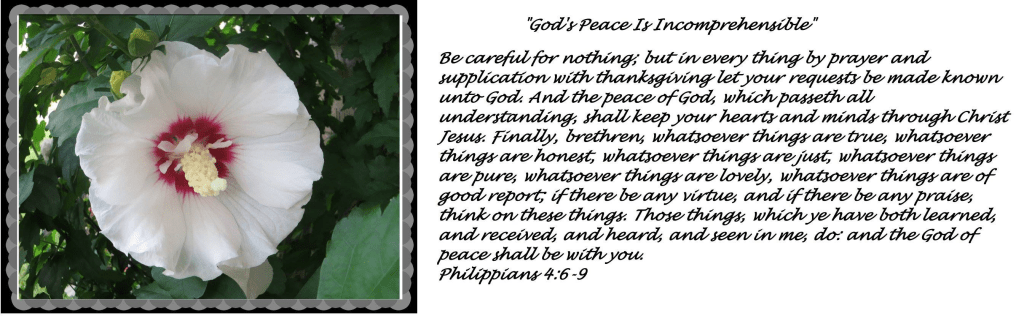 Be careful about nothing; but in everything by prayer and supplication with thanksgiving let your requests be made known unto God. And the peace of God, which passeth all understanding, shall keep your hearts and minds through Christ Jesus. Finally, brethren, whatsoever things are true, whatsoever things are honest, whatsoever things are just, whatsoever things are pure, whatsoever things are lovely, whatsoever things are of good report; if there be any virtue, and if there be any praise, think on these things. Those things, which ye have both learned, and received, and heard, and seen in me, do: and the God of peace shall be with you.
