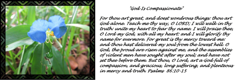 For thou art great, and doest wondrous things: thou art God alone. Teach me thy way, O LORD; I will walk in thy truth: unite my heart to fear thy name. I will praise thee, O Lord my God, with all my heart: and I will glorify thy name for evermore. For great is thy mercy toward me: and thou hast delivered my soul from the lowest hell. O God, the proud are risen against me, and the assemblies of violent men have sought after my soul; and have not set thee before them. But thou, O Lord, art a God full of compassion, and gracious, long suffering, and plenteous in mercy and truth.