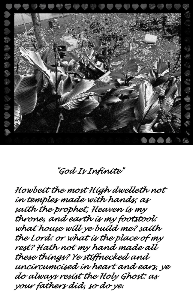 Howbeit the Highest dwelleth not in temples made with hands; as saith the prophet, Heaven is my throne, and earth is my footstool: what house will ye build me? saith the Lord: or what is the place of my rest? Hath not my hand made all these things? Ye stiff-necked and uncircumcised in heart and ears, ye do always resist the Holy Ghost: as your fathers did, so do ye.