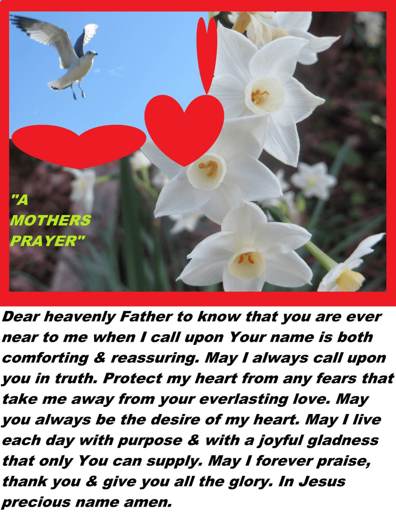 Dear Heavenly Father to know You are ever near me when I call upon Your name is both comforting & reassuring. May I always call upon You in truth. Protect my heart from any fears that take me away from Your everlasting love. May You always be the desire of my heart. May I live each day with a purpose & with a joyful gladness that only You can supply. May I forever praise, Thank You & give You all the glory. In Jesus Precious Name Amen.