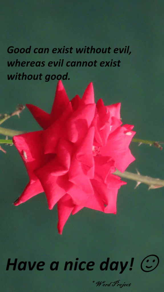 Good can exist without evil, whereas evil cannot exist without good.