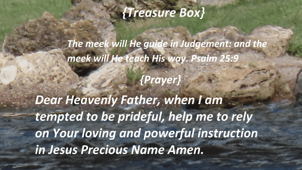 Dear Heavenly Father, when I am tempted to be prideful, help me to rely on Your loving and powerful instruction in Jesus Precious Name Amen.