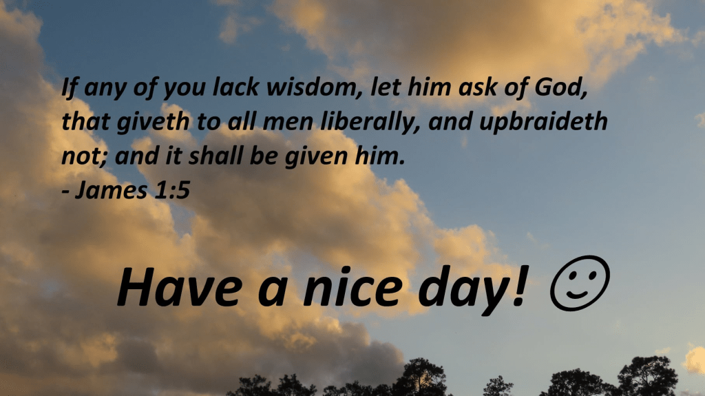 If any of you lack wisdom, let him ask of God, that giveth to all men liberally, and upbraided not; and it shall be given him.