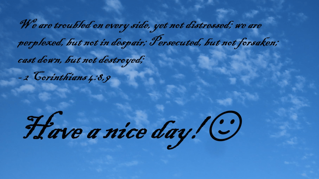 We are troubled on every side, yet not distressed; we are perplexed, but not in despair; Persecuted, but not forsaken; cast down, but not destroyed;