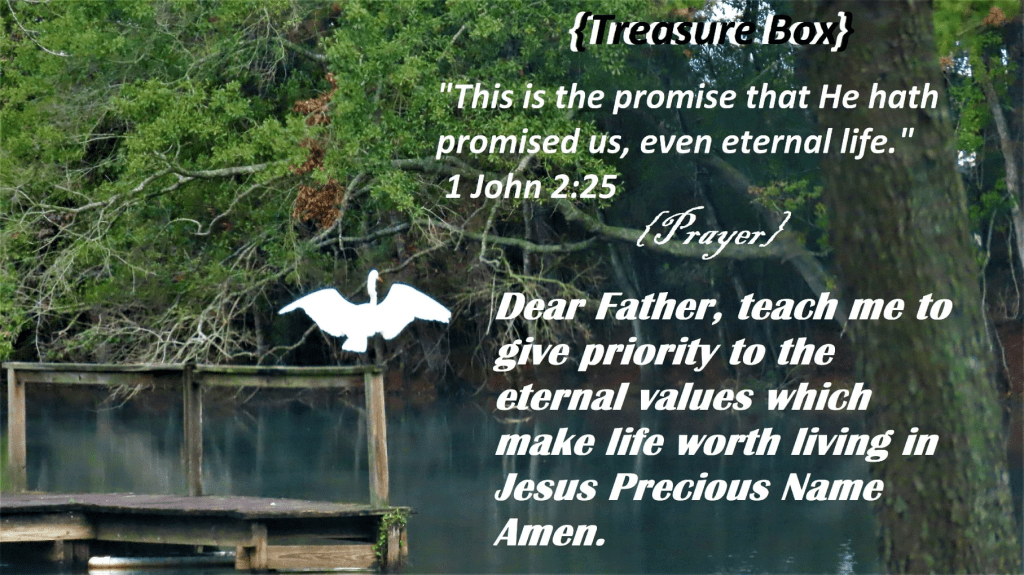 Dear Father, teach me to give priority to the eternal values which make life worth living in Jesus Precious Name Amen.