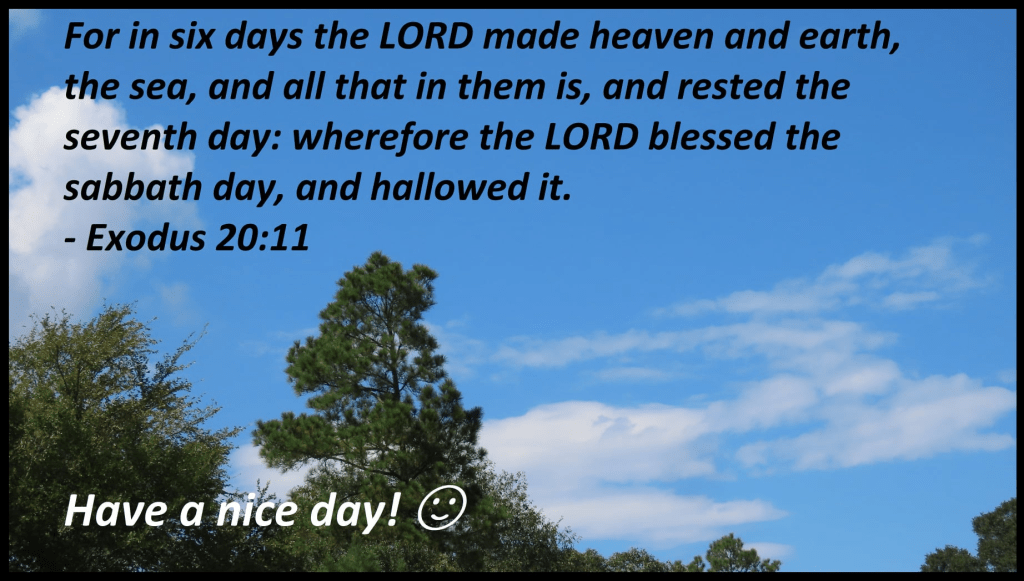 For in six days the LORD made heaven and earth, the sea, and all that in them is, and rested the seventh day: wherefore the LORD blessed the sabbath day, and hallowed it.