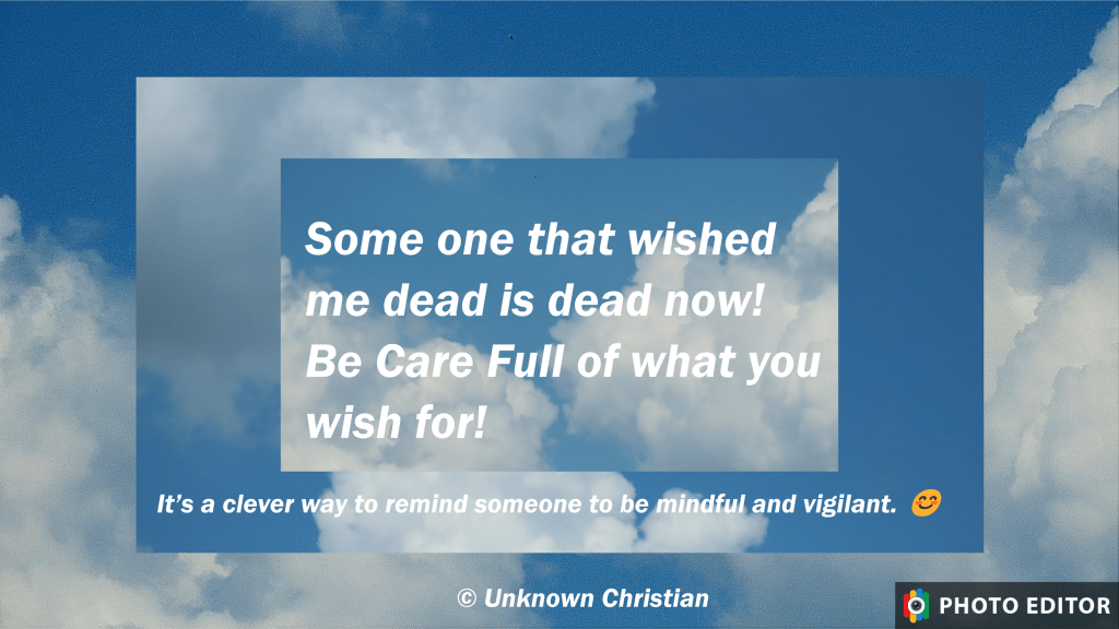 Some one that wishes me dead is dead now! Be Care Full of what you wish for!