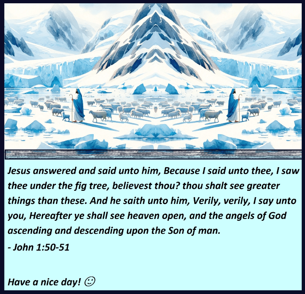 Jesus answered and said unto him, Because I said unto thee, I saw thee under the fig tree, believest thou? thou shalt see greater things than these. And he saith unto him, Verily, verily, I say unto you, Hereafter ye shall see heaven open, and the angels of God ascending and descending upon the Son of man.