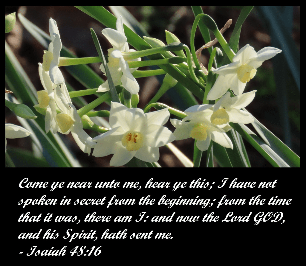 Come ye near unto me, hear ye this; I have not spoken in secret from the beginning; from the time that it was, there am I: and now the Lord GOD, and his Spirit, hath sent me.