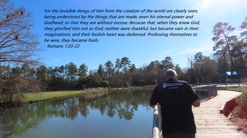 For the invisible things of him from the creation of the world are clearly seen, being understood by the things that are made, even his eternal power and Godhead; so that they are without excuse: Because that, when they knew God, they glorified him not as God, neither were thankful; but became vain in their imaginations, and their foolish heart was darkened. Professing themselves to be wise, they became fools,