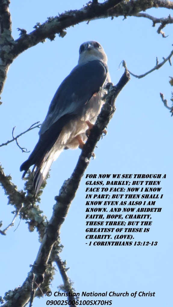 For now we see through a glass, darkly; but then face to face: now I know in part; but then shall I know even as also I am known. And now abideth faith, hope, charity, these three; but the greatest of these is charity. (love).