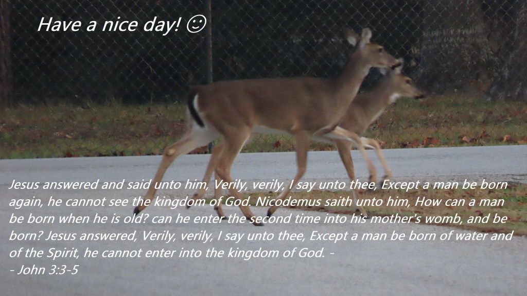 Jesus answered and said unto him, Verily, verily, I say unto thee, Except a man be born again, he cannot see the kingdom of God. Nicodemus saith unto him, How can a man be born when he is old? can he enter the second time into his mother’s womb, and be born? Jesus answered, Verily, verily, I say unto thee, Except a man be born of water and of the Spirit, he cannot enter into the kingdom of God. –