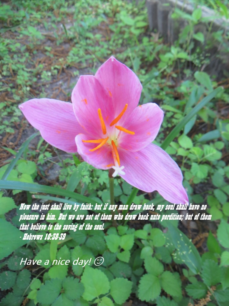 Now the just shall live by faith: but if any man draw back, my soul shall have no pleasure in him. But we are not of them who draw back unto perdition; but of them that believe to the saving of the soul.