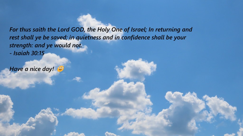 For thus saith the Lord GOD, the Holy One of Israel; In returning and rest shall ye be saved; in quietness and in confidence shall be your strength: and ye would not.