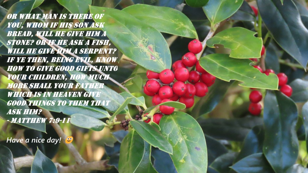 Or what man is there of you, whom if his son ask bread, will he give him a stone? Or if he ask a fish, will he give him a serpent? If ye then, being evil, know how to give good gifts unto your children, how much more shall your Father which is in heaven give good things to them that ask him?