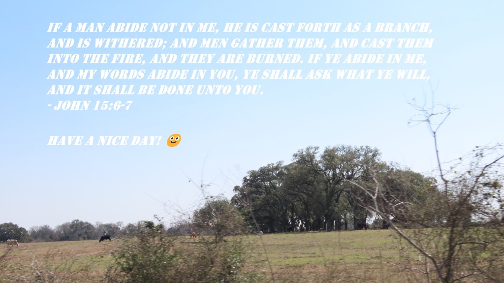 If a man abide not in me, he is cast forth as a branch, and is withered; and men gather them, and cast them into the fire, and they are burned. If ye abide in me, and my words abide in you, ye shall ask what ye will, and it shall be done unto you.