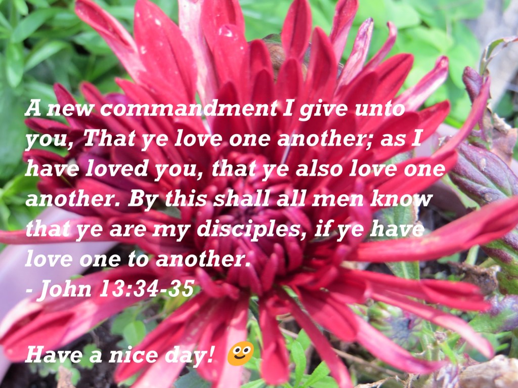 A new commandment I give unto you, That ye love one another; as I have loved you, that ye also love one another. By this shall all men know that ye are my disciples, if ye have love one to another.